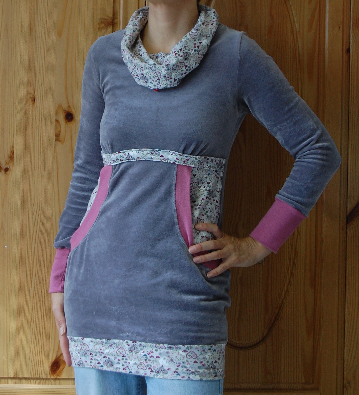 Der Jersey ist von mimimensch und Co eine B-Ware, aber ganz tolle dicke Qualität. Nur am äußeren Rand war nur eine leichte Verfärbung, die man nicht nutzen konnte. Insgesamt wirklich wenig Stoffverlust.